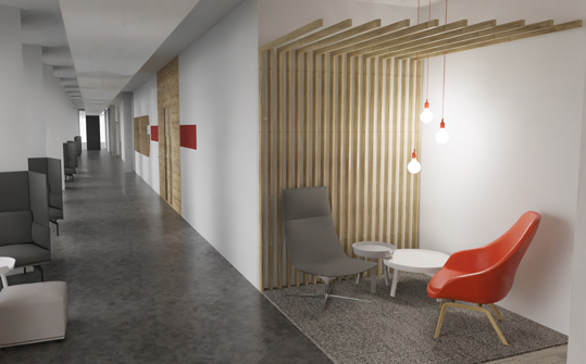 Das Turminal ist jetzt schon ein pulsierender Arbeitsort. Weil wir noch mehr Wert auf ein modernes und lockeres Arbeitsambiente legen, werden wir bis Sommer 2024 eine Gemeinschaftszone mit WorkCafé und weiteren Sitzungszimmern einrichten sowie eine kleine, feine Essensauswahl für den Hunger anbieten.